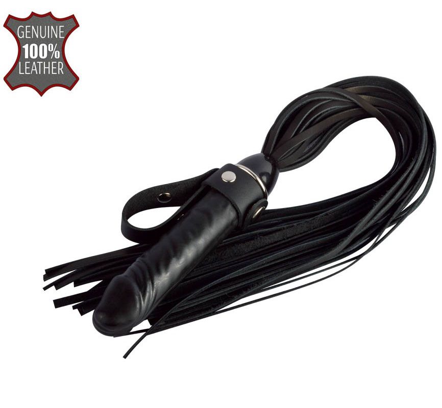 Необычный сексуальный атрибут в виде кожаной плети с рукоятью в виде фаллоса из натурального латекса. Плеть состоит из гладких хвостов натуральной кожи, которые образуют единый пучок, способный качественно разогреть тело партнёра. Рукоять-фаллос изготовлен из натурального латекса и имеет рельефную реалистичную форму. Универсальность конструкции секс-игрушки, значительно разнообразит интимные отношения и придаст им нотку пикантности и чувственности, что сделает её любимым сексуальным атрибутом Вашей пары. Рабочая длина рукояти - 14 см., диаметр - 3,2 см. Длина ударной части - 40 см.