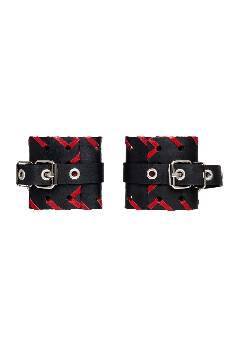 Готовы играть по-взрослому? Не бойтесь своих желаний! Основатели бренда уверены: лучший способ избавиться от искушения - поддаться ему! Добавьте пикантную деталь в ролевую игру и воплотите самую смелую сексуальную фантазию в реальность! Двухслойные кожаные наручники с окантовкой красного цвета, могут стать стильным аксессуаром на «свободных» руках, но могут послужить вашим целям и фантазиям по своему прямому назначению. Наличие двух карабинов и колец позволяет использовать изделие как раздельно – аксессуар-манжеты, так и как наручники для фиксации. К широким металлическим кольцам также можно присоединить и другие аксессуары при помощи карабинов. Благодаря универсальному размеру наручники могут использоваться и мужчинами, и женщинами. Размер легко регулируется с помощью металлических пряжек, органично вписывающихся в общий стиль. Длина манжет - 20 см, ширина манжет - 6,5 см. Длина сцепки - 13 см.