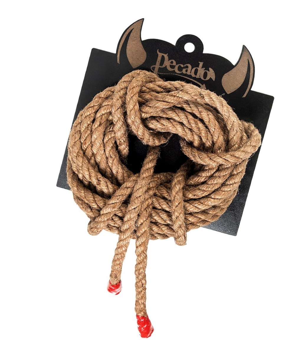 Джутовая веревка гарантированно вызовет мурашки по телу обоих партнеров. Этот классический предмет в БДСМ играх изготовлен по всем канонам искусства Шибари. Высококачественный материал натурального цвета практичен и не раздражает кожу. Веревка нежная, тактильно приятная, но в меру жесткая. Обработана, выварена вручную с применением гипоаллергенных материалов и готова к применению. Обладает теплым древесным ароматом, благодаря ароматизации афродизиаком. Концы веревки обработаны с помощью сургуча.