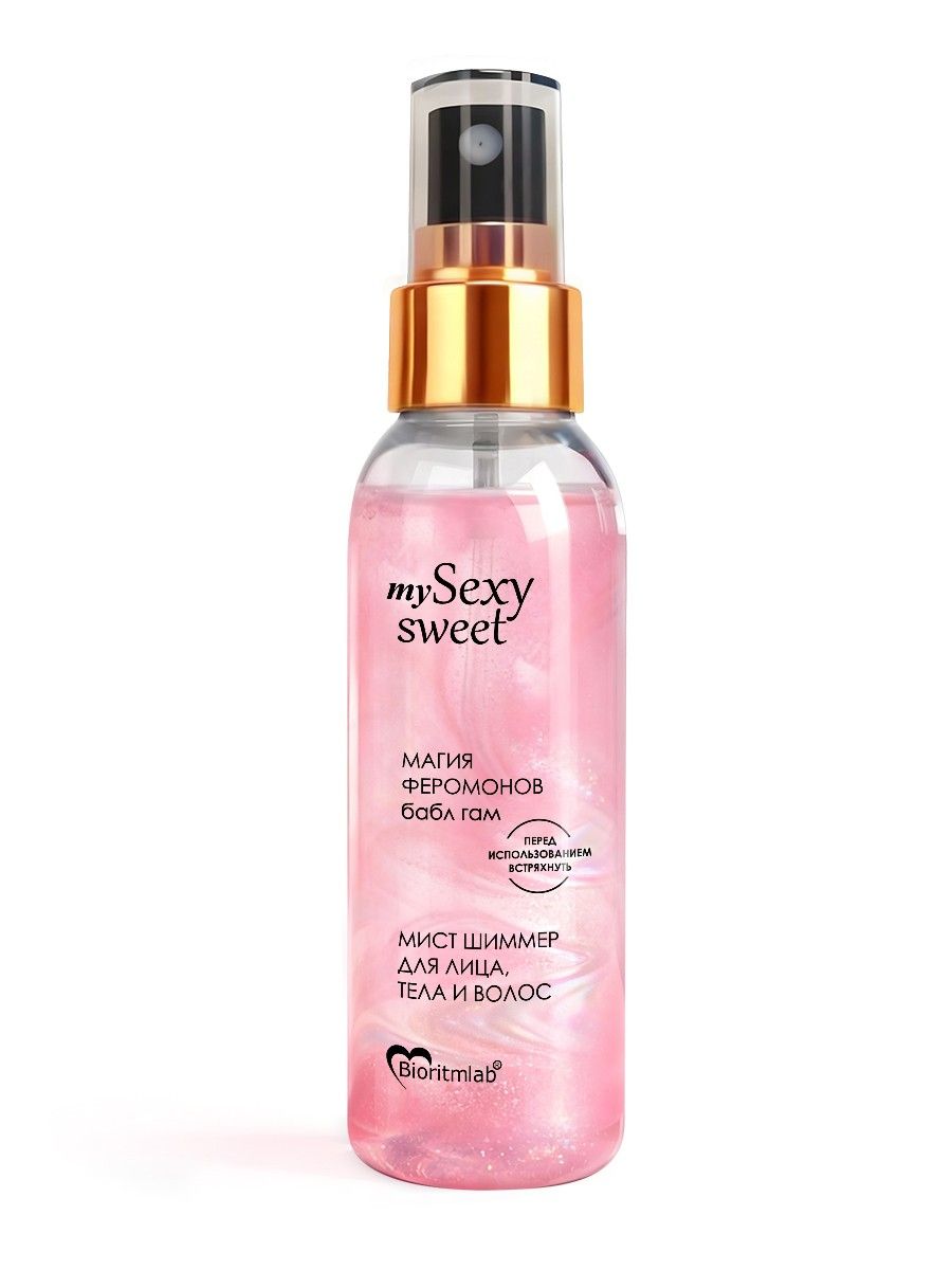 Воздушный мист с ароматом бабл-гам, шиммером и феромонами. Приятно освежает, увлажняет и тонизирует. Лёгкое облако перламутровых частиц придаёт коже и волосам волшебное сияние. Лёгкий приятный аромат поднимает настроение. Феромоны усиливают чувственность и привлекательность. Бетаин и натуральный пребиотик в составе повышают защитные функции кожи, делая её мягкой и бархатистой.